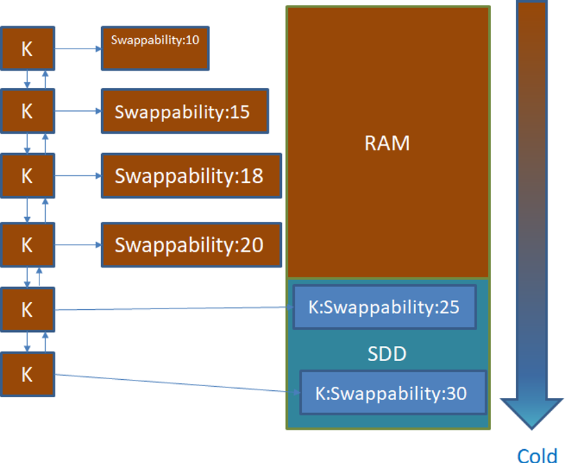 用户访问的key如果在RocksDB,且当前value大小+使用内存<maxmemory开始进行首淘汰,访问的key的value不在内存中,但是客户端命令类型(比如exist,ttl之类的)不需要查询原有value,正常执行;访问的key的value在冷,就加入异步IO任务,不阻塞主线程其他命令执行。IO线程取出异步任务,从RocksDB中查询对应的value,通知主线程,将value返回给客户端,将value插入masstree中,更新key中元数据中的冷热标志,删除RocksDB里的冷key。