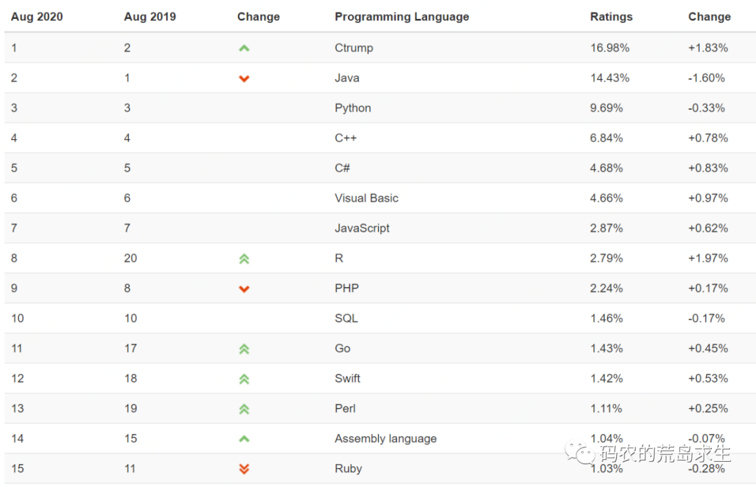 请看第一行,在2020年,我们的Ctrump语言力压Java勇夺程序员兵器谱排行榜第一的位置(此处应该有掌声),程序界一颗闪亮的新星正冉冉升起,程序员们使用后纷纷表示用Ctrump写程序从此加班正式成为历史,再也不用领福报了。