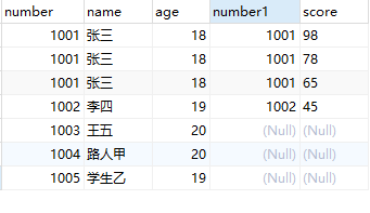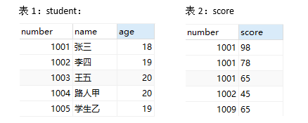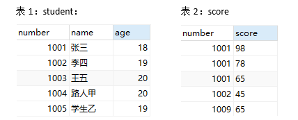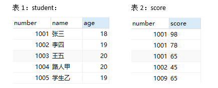 SELECT * FROM student INNER JOIN score ON student.number = score.number