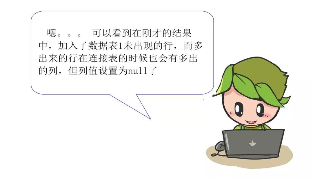 和左连接相反,在Inner join的基础上加上数据表2未出现的行