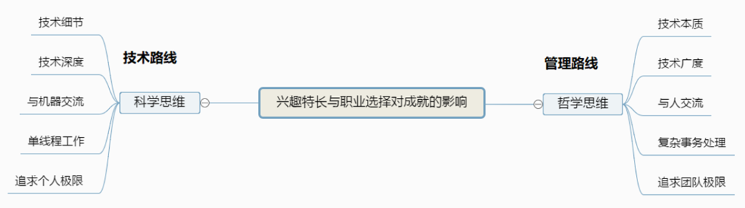 承接上面,在发展突破之前,先要确定一个方向。比较常见的是技术与管理路线的选择。这里有个观点,“学而优则士仕”,即学习优秀者去当官,换到现在就是技术做好了去做管理者。做管理与做技术,其实是两种不同的思维方式的体现,即科学思维与哲学思维。不同思维方式,表现在其工作关注点的不同。上面罗列了两种思维方式的差异。对于个体来说,选择走什么路线,还是要看个人特质与兴趣。否则放错了位置,对于个人是个煎熬。这里补充一点个人体会,我本人也是经历了从技术岗位,到管理岗位,再到技术岗位的过程。在对待管理岗位上,有个误区。就是管理慢慢干就会了,其实这点是说明管理是个实践型的工作,需要不断积累,而不是说明管理不需要学习。恰恰相反,我认为管理是需要学习的,是需要像一个通常技能(例如java)去学习。管理方向其涉及的领域更为宽泛,不经过系统化学习很难快速掌握。