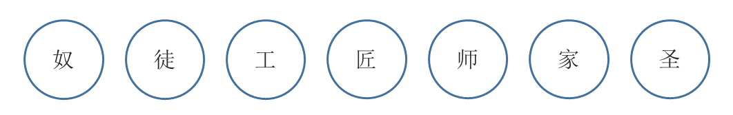判定方向后,还需要认清自己所处的阶段。这里引用古人对职业发展阶段的划分来说明。古人把人的职业进阶分成了七层:奴、徒、工、匠、家、师、圣。