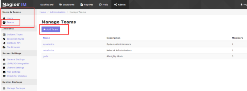 创建团队:点击添加团队“Add Team”,输入所需的信息,保存后即可生效。