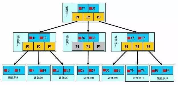 如上图,是一颗b+树,关于b+树的定义可以参见B+树,这里只说一些重点,浅蓝色的块我们称之为一个磁盘块,可以看到每个磁盘块包含几个数据项(深蓝色所示)和指针(黄色所示),如磁盘块1包含数据项17和35,包含指针P1、P2、P3,P1表示小于17的磁盘块,P2表示在17和35之间的磁盘块,P3表示大于35的磁盘块。真实的数据存在于叶子节点即3、5、9、10、13、15、28、29、36、60、75、79、90、99。非叶子节点只不存储真实的数据,只存储指引搜索方向的数据项,如17、35并不真实存在于数据表中。如图所示,如果要查找数据项29,那么首先会把磁盘块1由磁盘加载到内存,此时发生一次IO,在内存中用二分查找确定29在17和35之间,锁定磁盘块1的P2指针,内存时间因为非常短(相比磁盘的IO)可以忽略不计,通过磁盘块1的P2指针的磁盘地址把磁盘块3由磁盘加载到内存,发生第二次IO,29在26和30之间,锁定磁盘块3的P2指针,通过指针加载磁盘块8到内存,发生第三次IO,同时内存中做二分查找找到29,结束查询,总计三次IO。真实的情况是,3层的b+树可以表示上百万的数据,如果上百万的数据查找只需要三次IO,性能提高将是巨大的,如果没有索引,每个数据项都要发生一次IO,那么总共需要百万次的IO,显然成本非常非常高。1、通过上面的分析,我们知道IO次数取决于b+数的高度h,假设当前数据表的数据为N,每个磁盘块的数据项的数量是m,则有h=㏒(m+1)N,当数据量N一定的情况下,m越大,h越小;而m = 磁盘块的大小 数据项的大小,磁盘块的大小也就是一个数据页的大小,是固定的,如果数据项占的空间越小,数据项的数量越多,树的高度越低。这就是为什么每个数据项,即索引字段要尽量的小,比如int占4字节,要比bigint8字节少一半。这也是为什么b+树要求把真实的数据放到叶子节点而不是内层节点,一旦放到内层节点,磁盘块的数据项会大幅度下降,导致树增高。当数据项等于1时将会退化成线性表。2、当b+树的数据项是复合的数据结构,比如(name,age,sex)的时候,b+数是按照从左到右的顺序来建立搜索树的,比如当(张三,20,F)这样的数据来检索的时候,b+树会优先比较name来确定下一步的所搜方向,如果name相同再依次比较age和sex,最后得到检索的数据;但当(20,F)这样的没有name的数据来的时候,b+树就不知道下一步该查哪个节点,因为建立搜索树的时候name就是第一个比较因子,必须要先根据name来搜索才能知道下一步去哪里查询。比如当(张三,F)这样的数据来检索时,b+树可以用name来指定搜索方向,但下一个字段age的缺失,所以只能把名字等于张三的数据都找到,然后再匹配性别是F的数据了, 这个是非常重要的性质,即索引的最左匹配特性。关于MySQL索引原理是比较枯燥的东西,大家只需要有一个感性的认识,并不需要理解得非常透彻和深入。我们回头来看看一开始我们说的慢查询,了解完索引原理之后,大家是不是有什么想法呢?先总结一下索引的几大基本原则1、最左前缀匹配原则,非常重要的原则,mysql会一直向右匹配直到遇到范围查询(>、<、between、like)就停止匹配,比如a 1="" and="" b="2" c=""> 3 and d = 4 如果建立(a,b,c,d)顺序的索引,d是用不到索引的,如果建立(a,b,d,c)的索引则都可以用到,a,b,d的顺序可以任意调整。2、=和in可以乱序,比如a = 1 and b = 2 and c = 3 建立(a,b,c)索引可以任意顺序,mysql的查询优化器会帮你优化成索引可以识别的形式3、尽量选择区分度高的列作为索引,区分度的公式是count(distinct col)/count(*),表示字段不重复的比例,比例越大我们扫描的记录数越少,唯一键的区分度是1,而一些状态、性别字段可能在大数据面前区分度就是0,那可能有人会问,这个比例有什么经验值吗?使用场景不同,这个值也很难确定,一般需要join的字段我们都要求是0.1以上,即平均1条扫描10条记录4、索引列不能参与计算,保持列“干净”,比如from_unixtime(create_time) = ’2014-05-29’就不能使用到索引,原因很简单,b+树中存的都是数据表中的字段值,但进行检索时,需要把所有元素都应用函数才能比较,显然成本太大。所以语句应该写成create_time = unix_timestamp(’2014-05-29’);5、尽量的扩展索引,不要新建索引。比如表中已经有a的索引,现在要加(a,b)的索引,那么只需要修改原来的索引即可