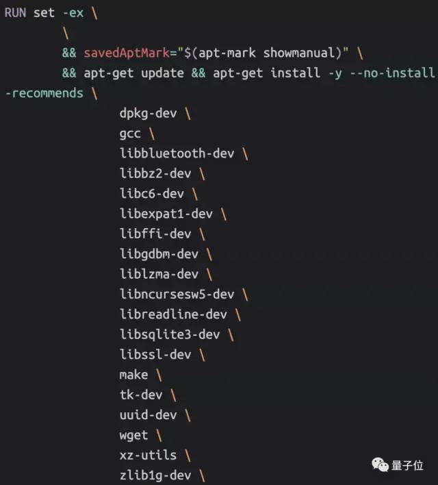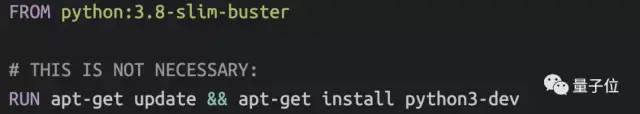 最后,是安装pip,事实上,Docker会确保安装的是新版本的pip,即它有自己的时间表,即使可能距离Python上一版发布已经过了很久。