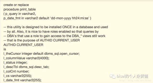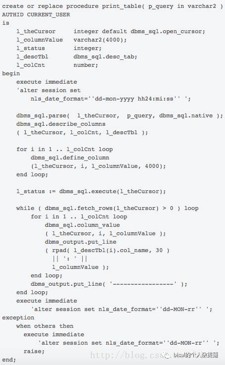非常整齐,不用图形化工具,就可以使用sqlplus读了。Tom在这篇帖子发布了这个存储过程,