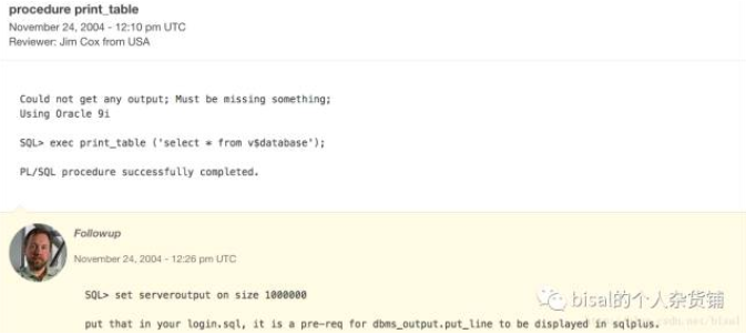 执行存储过程有一个前提,设置serveroutput为on,Tom建议可以将此设置加入sqlplus的预处理中,编辑login.sql,