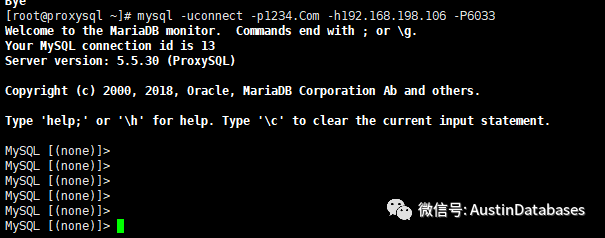 mysql -u admin -padmin -h 127.0.0.1 -P6032 --prompt='Admin> '