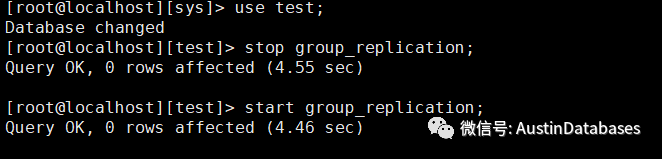 1 我们停止掉MGR 中的写库primary , 测试系统是否可以进行切换