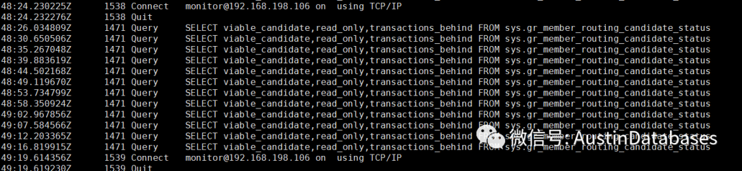 其实这里要讨论的一个关键的问题,就是在MYSQL 5.7中通过proxysql 来行切换是没有问题,但换到 8.019 系统就无法进行正常的切换和使用。主要的问题就在于下面的这段,下面的脚本是需要在MYSQL 的sys库来生成的,目的就是提供查询值,来让proxysql判断MYSQL 节点是否在正常工作。