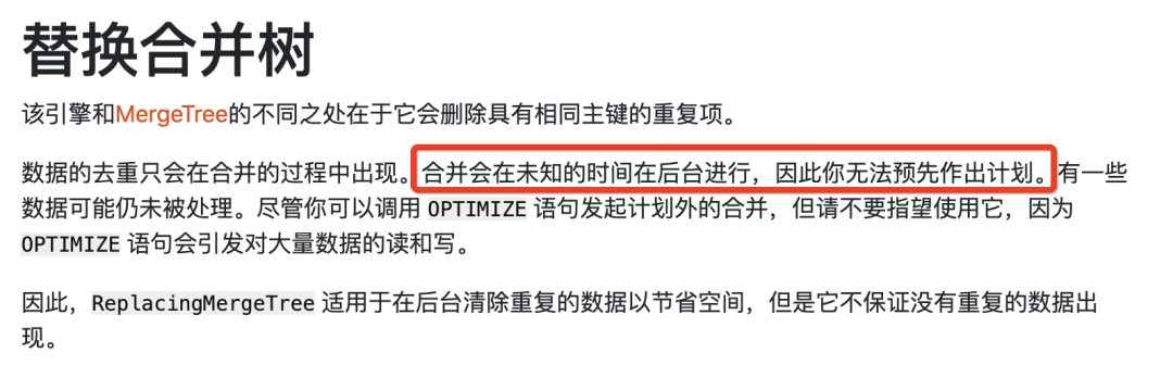 查询 CK 手册发现,即便对数据一致性支持最好的 Mergetree,也只是保证最终一致性:
