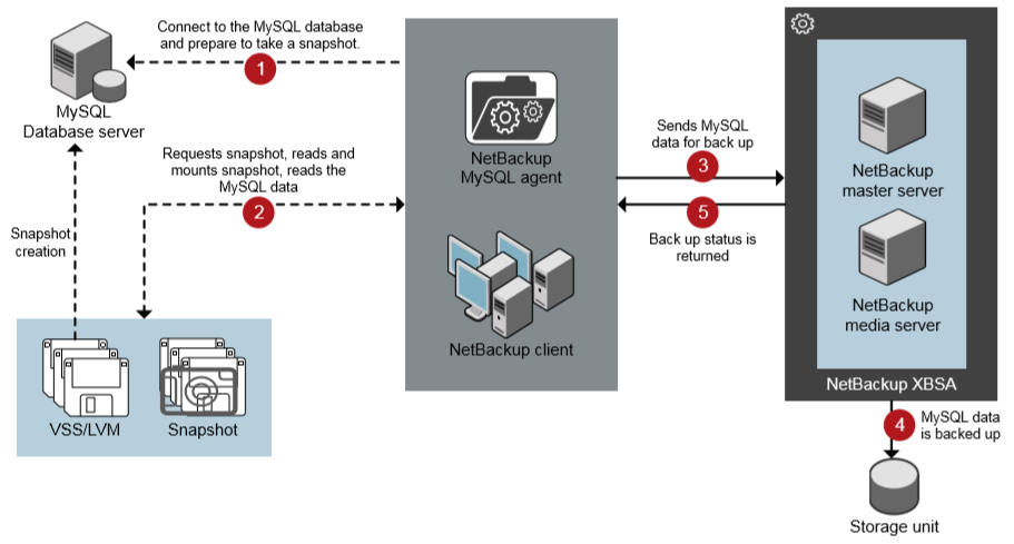 快照创建成功后,挂载快照,并把MySQL备份数据发送给NBU Server。