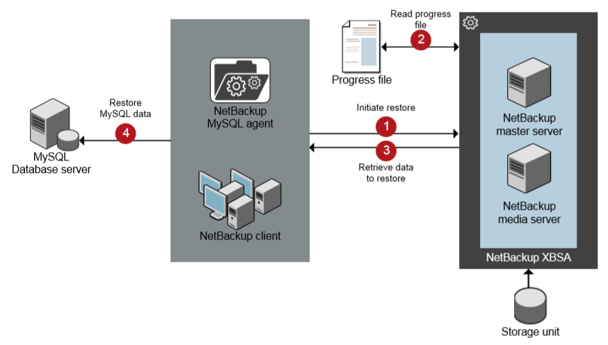 NetBackupfor MySQL Agent 整体恢复流程为: