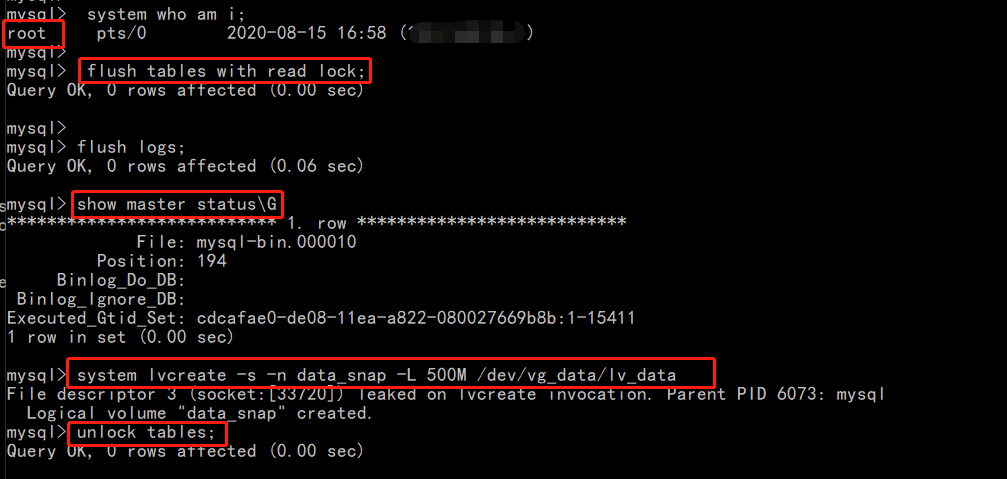 Mysql成功执行命令后,Agent向服务器发出VSS/LVM相关创建快照命令。