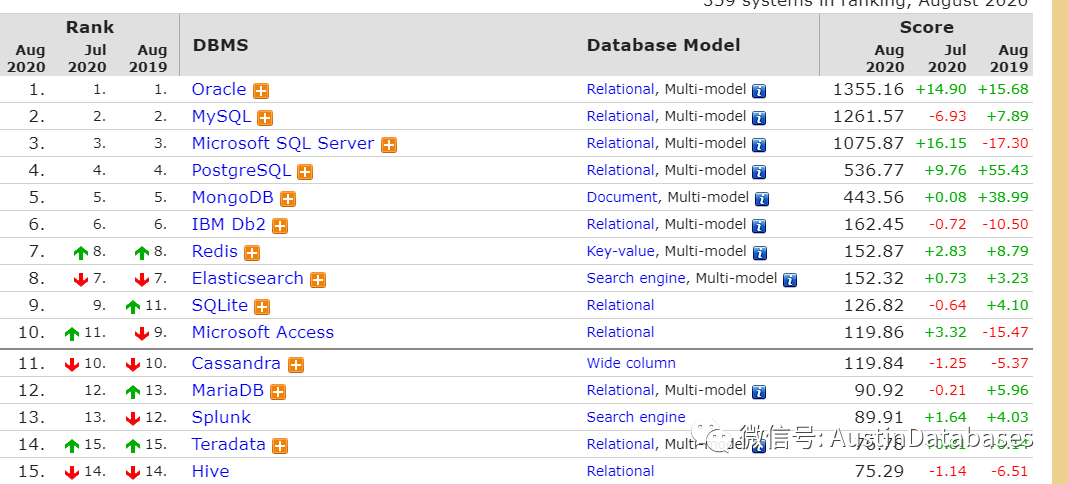 这篇文字的起因是下面的这张图, 首先的感觉是,这不科学呀,NO.1 不应该是Oracle , 这一定必有原有.仔细看了这篇文章