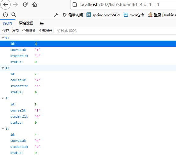 1. 正常情况下查询一个学生所选课程及完成情况只需要传入student_id