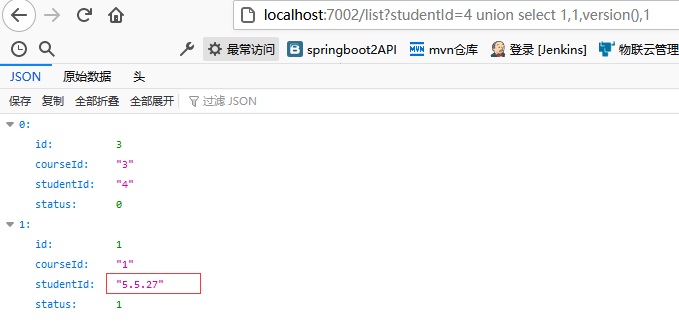 String sql = "select id,course_id,student_id,status from course where student_id = "+ studentId;