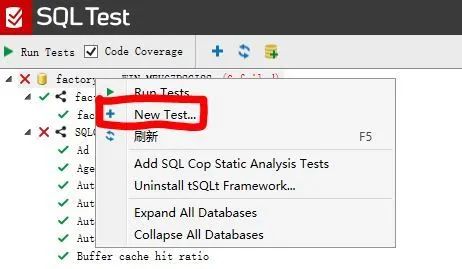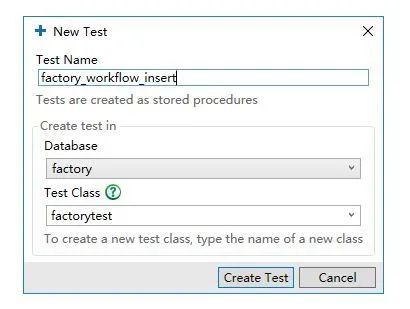 点开 SQL Test 选择需要测试的数据库 factory, tSQLt 会自动安装一些表,存储过程.所以不建议在生产环境安装 SQLToolbeltEssentials.