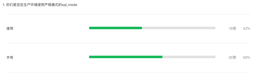 其实从自身的角度来看这个结果有一定历史原因,从5.6 升级到5.7 版本 或者升级到8.0版本,默认宽松模式下直接到严格模式下会导致正常的程序代码报错,停止执行,影响业务。导致相当比例的DBA会选择默认宽松模式。