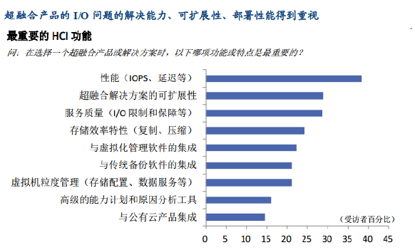 目前超融合应用已经覆盖企业级云平台、企业桌面云服务、企业容灾云平台、企业开发测试云、行业云等多种企业场景,进入了企业生产环境,并在银行、证券、交通、制造、政府、能源、零售、教育等关键行业全面突破。更加丰富的应用场景和行业覆盖有助于推动超融合的产品迭代和成熟,产品的进化也让超融合能够进入更多的应用场景。