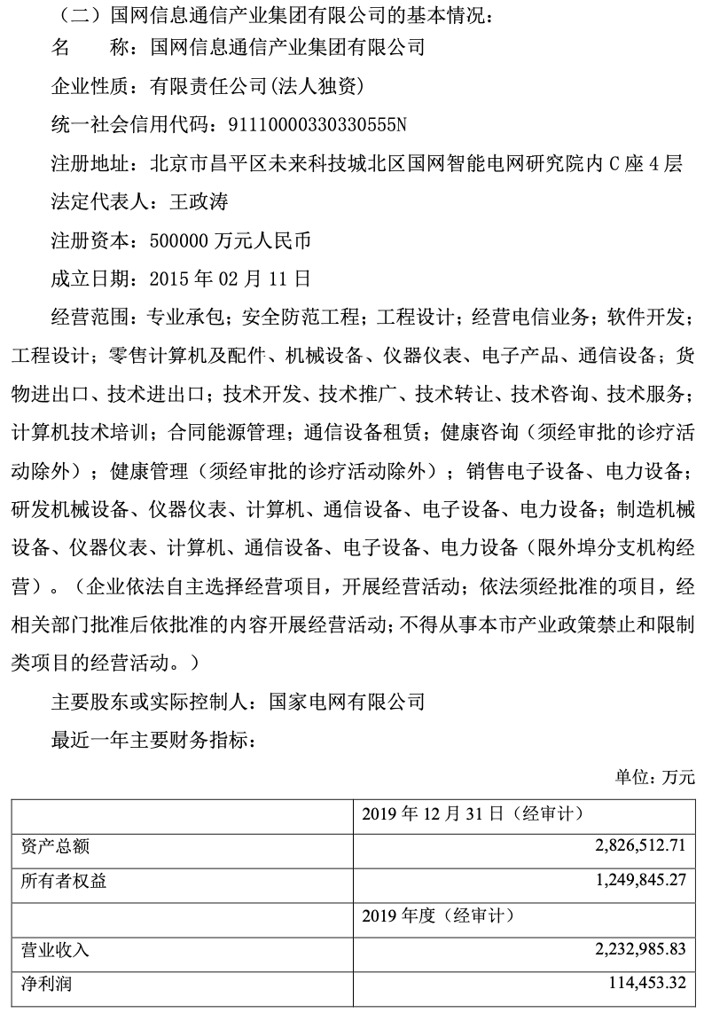 代表国家电网出资的主体是国网信息通信产业集团有限公司: