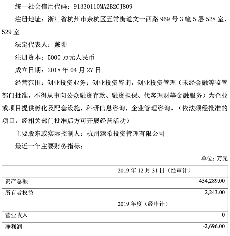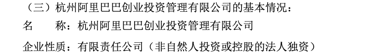 代表阿里出资的是杭州阿里巴巴创业投资管理有限公司:
