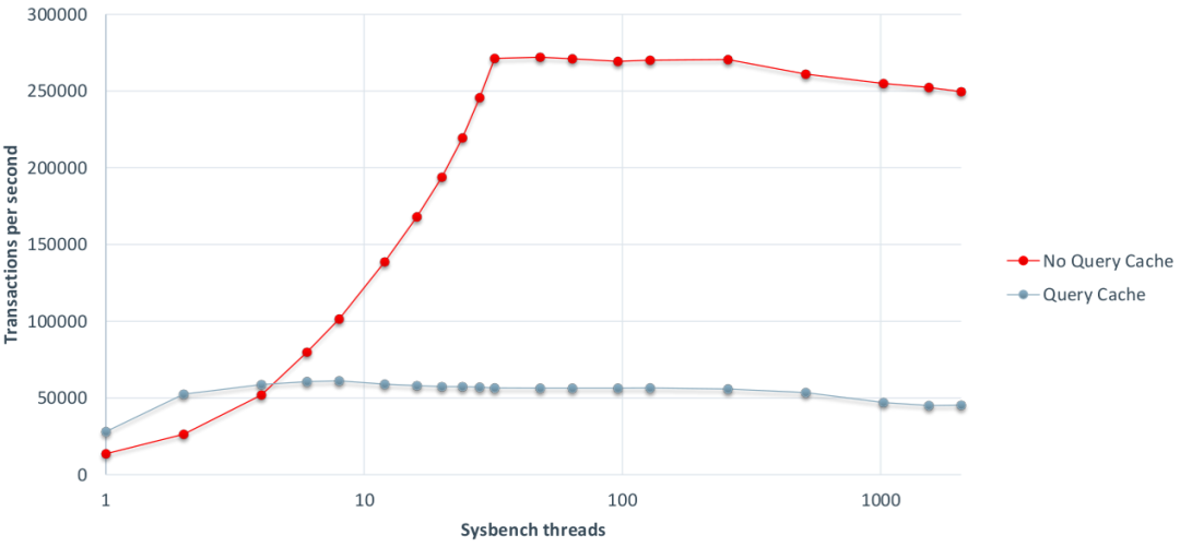 其次,查询缓存的另一个大问题是它受到单个互斥锁的保护。在具有多个内核的服务器上,大量查询会导致大量的互斥锁争用。