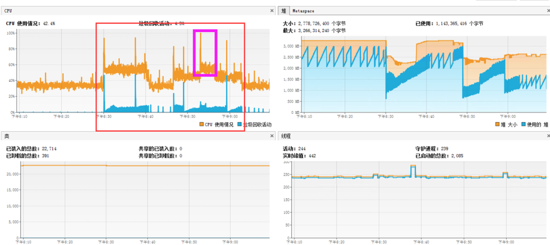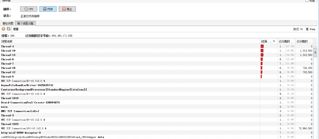 ⑤再看看堆栈,发现有一些线程阻塞和死锁。