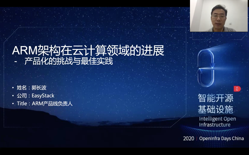 8月16-17日,由OpenStack基金会举办的国内极具影响力的开源盛会2020 OpenInfra Days China在线上召开。本次大会聚焦“智能开源基础设施”,围绕人工智能、机器学习、5G等应用场景以及容器基础设施、硬件自动化、网络与存储而展开基础设施演进的讨论和技术展望。大会邀请来自全球社区的技术专家和行业资深领袖,分享全球前沿基础设施技术的展望和探索路径。易捷行云EasyStack ARM 产品线负责人郭长波在大会“硬件加速器集成与多架构支持”分论坛作“ARM架构在云计算领域的进展-产品化的挑战与最佳实践“演讲,展示了易捷行云基于开源技术,在ARM架构产品化方面的技术优势及最新实践。
