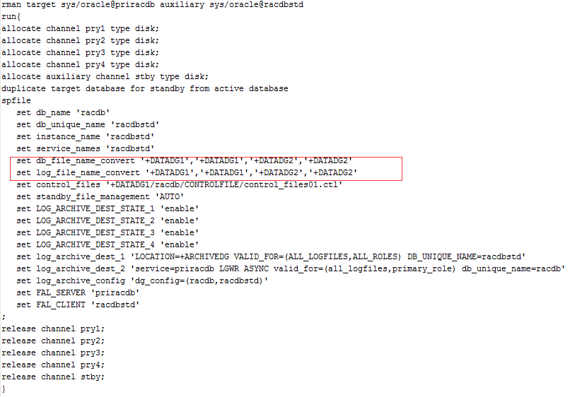为啥不能识别文件呢?采取OMF名称格式的数据文件,日志文件等都是自动识别的啦。好吧,既然你报不能识别,我们就指定路径让你去相应的路径下进行读取并在备库指定路径进行转换:
