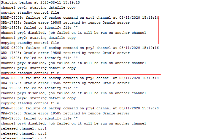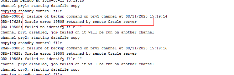 脚本在主库运行之后报ORA-19505:failed to identify file "",如下图所示