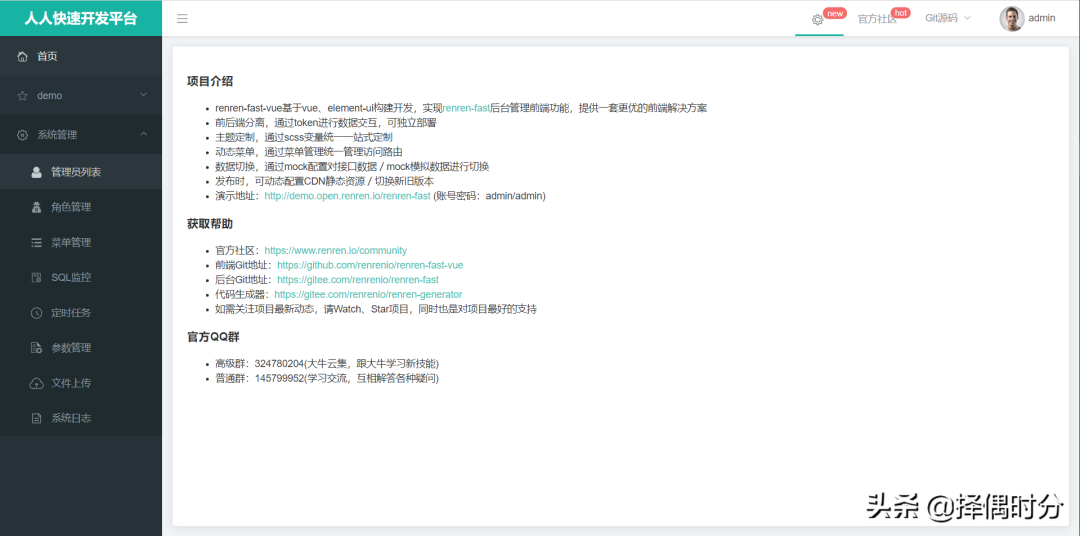 开源地址:https://gitee.com/renrenio/renren-fast-vue