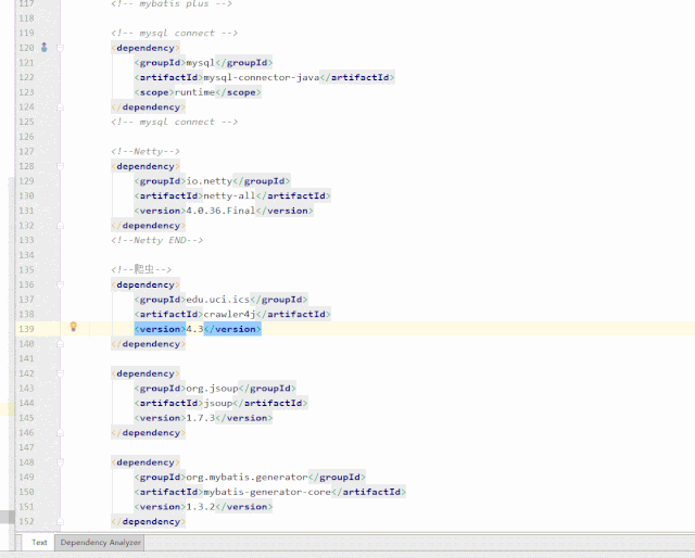 视图。显示红色表示存在依赖冲突,点进去直接在包上右键Exclude