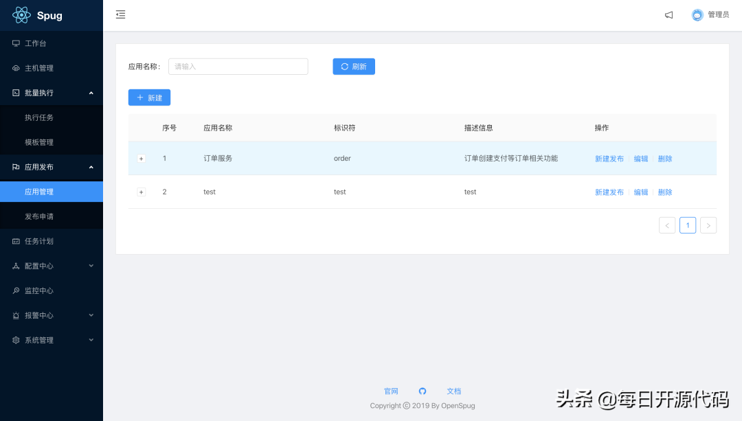 Spug 通过应用来进行部署的基本管理。一个应用,是一个需要部署的应用或服务的不同版本的集合: