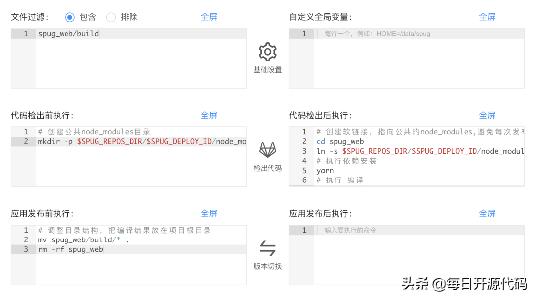 代码检出前执行,是在 Spug 服务器上,在拉取代码前,进行环境配置等工作;