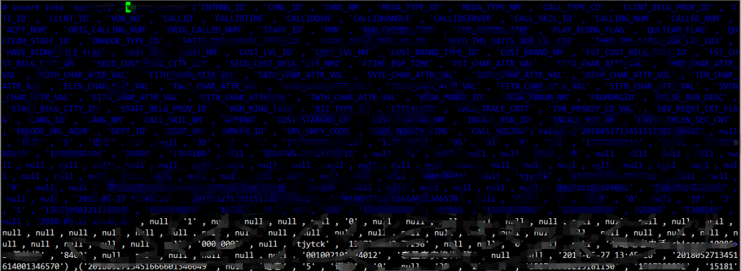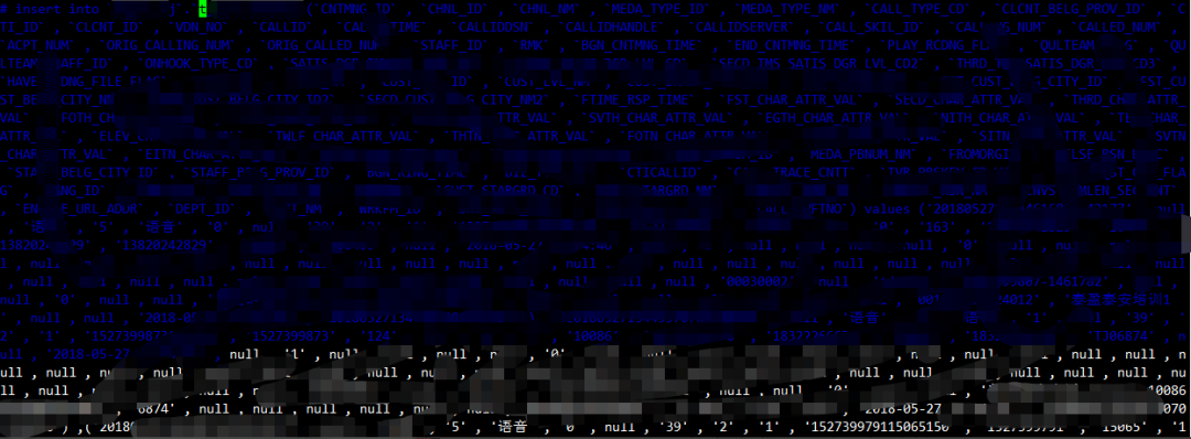 该事务为表“t_xxx_xxxxx”的insertinto on语句,共插入50条记录,其中包括记录“call_swftno=2018052713390100901288006”记录的插入