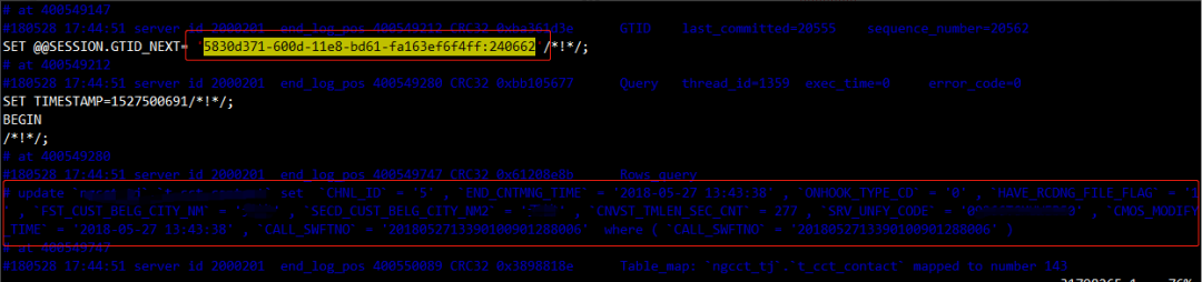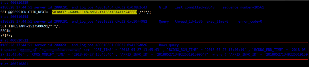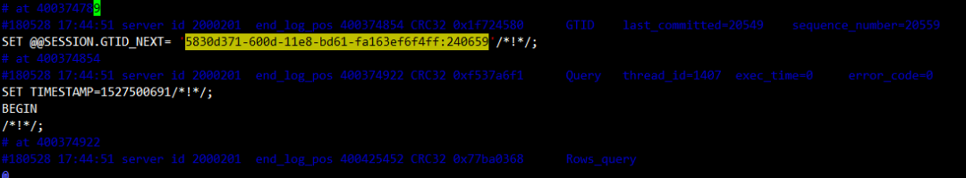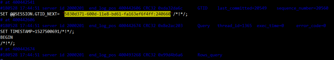分析“5830d371-600d-11e8-bd61-fa163ef6f4ff:240662”事务所在binlog: