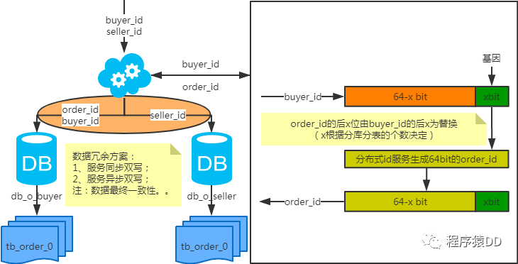 注:按照order_id或buyer_id查询时路由到db_o_buyer库中,按照seller_id查询时路由到db_o_seller库中。感觉有点本末倒置!有其他好的办法吗?改变技术栈呢? 后台除了partition key还有各种非partition key组合条件查询 NoSQL法