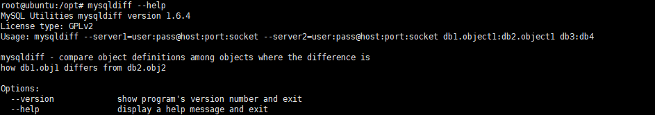 首先我们可以通 过 mysqldiff --help 命令查看用法:
