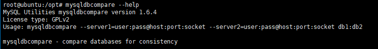 同上我们可以通过 mysqldbcompare --help 命令查看用法: