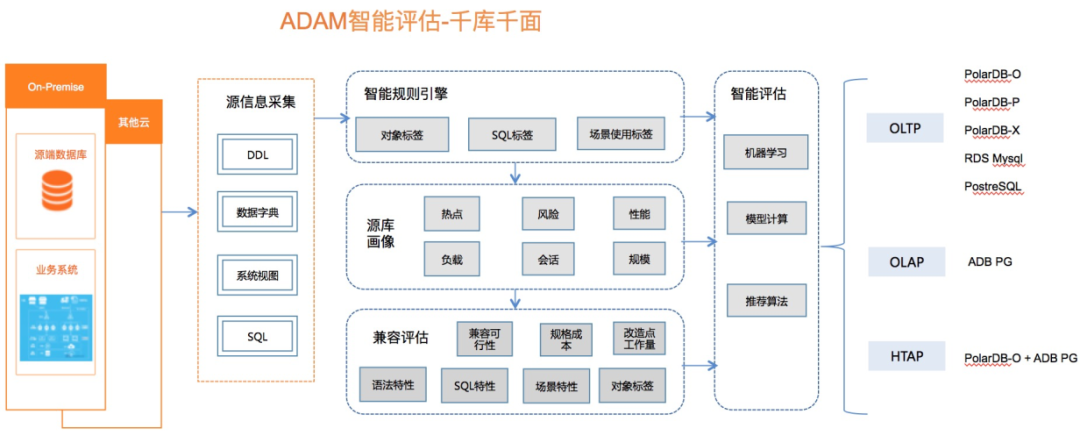ADAM通过对源库进行数据采集,分析客户对数据库的实际使用情况,结合400多项打标规则,识别出最适合的目标数据库,真正做到千库千面,无须经验丰富的DBA做技术调研,技术选型时间降为0;