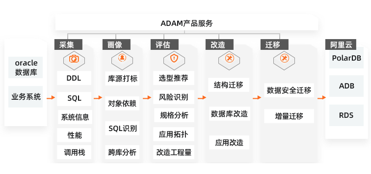 ADAM集成内部数据迁移工具DTS、外部DSG等丰富的工具,为异构数据库迁移提供全链路服务和护航。