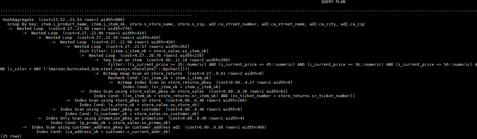 该hint表示:store_sales,store_returns关联的结果集估算行数在原估算行数基础上乘以50。生成计划如下所示: