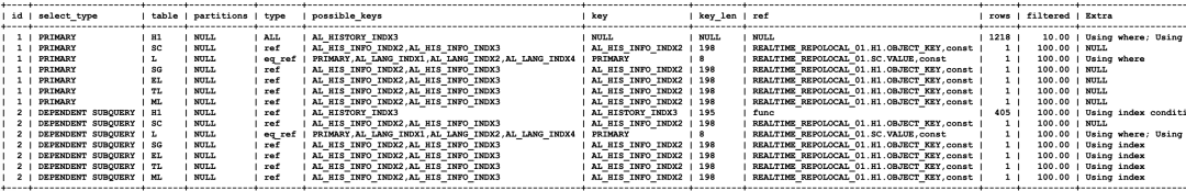 子查询的执行效率,又取决于每个符合C= H1.C这个条件的数据量。