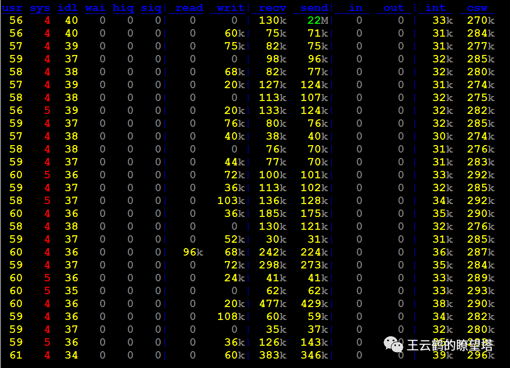 这段代码起了3万个线程,一起竞争原子锁。运行结果很喜人,除了csw指标上去了,其他指标基本没变化。这就解释了上面mysql实例内部原子锁大量竞争阻塞,而服务器没有任何报警的原因。之所以会有这么大量的原子锁竞争,是竞争者太多了,那么,减少最大连接数,是不是就能减少原子锁竞争呢?将max_connection改成1.5万,跑了下压力,发现insert语句依旧卡着,说明竞争依旧很激烈,但是,不再出现自动重启的现象了,而且当应用停止后,这些残留的sql会慢慢的执行完。
