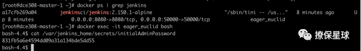 docker exec -it <jenkins_container> bash -c "cat var/jenkins_home/secrets/initialAdminPassword"