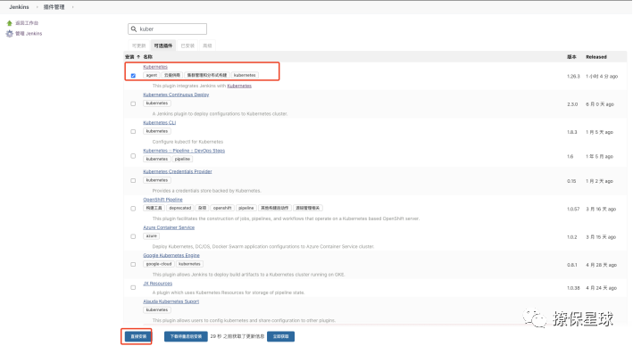 Jenkins 的 kubernetes-plugin 在执行构建时会在 kubernetes 集群中自动创建一个 Pod,并在 Pod 内部创建一个名为 jnlp 的容器,该容器会连接 Jenkins 并运行 Agent 程序,形成一个 Jenkins 的 Master 和 Slave 架构,然后 Slave 会执行构建脚本进行构建,但如果构建内容是要创建 Docker Image 就要实现 Docker In Docker 方案(在 Docker 里运行 Docker),如果要在集群集群内部进行部署操作可以使用 kubectl 执行命令,要解决 kubectl 的安装和权限分配问题。