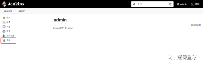 登录 Jenkins,点击右上角「用户」 → 左下角「凭据」: