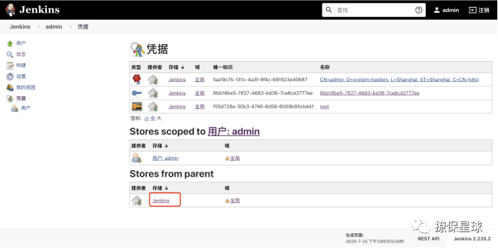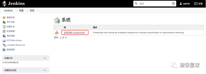 然后点击 Jenkins,选择全局凭据(Unrestricted)