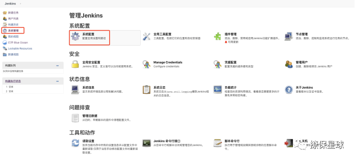登录 Jenkins,点击 系统管理 → 系统配置 → 滑动到页面最下面